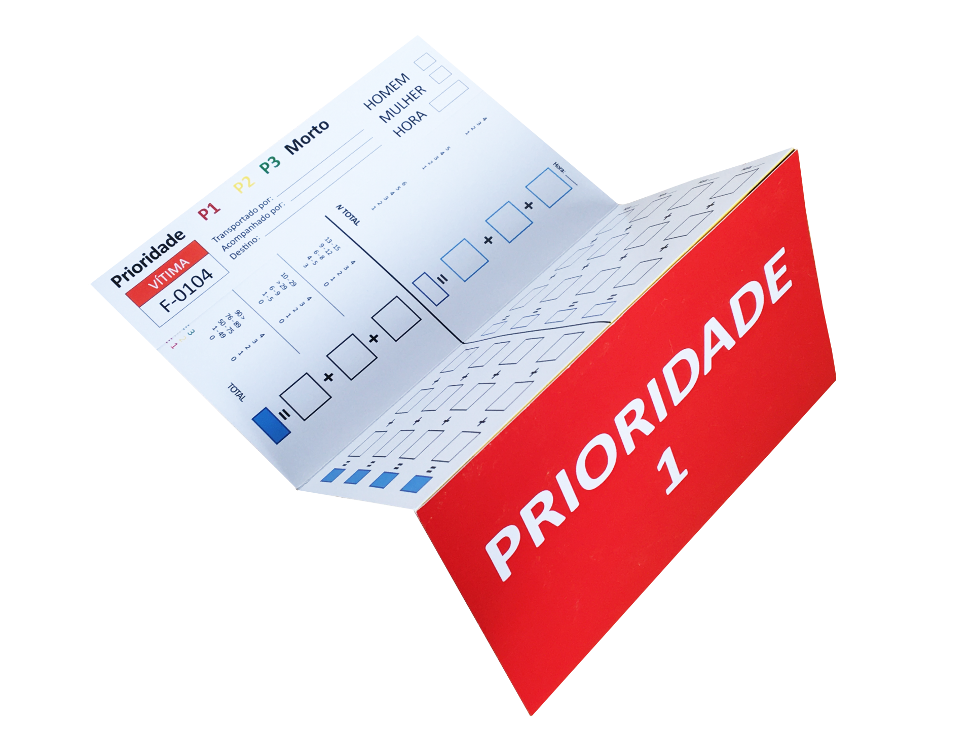Etiquetas de triagem multivítimas numeradas em série, com destacável por picotado para triagem em situações de cenários multivitimas pelas equipas de emergência. Sem bolsa.